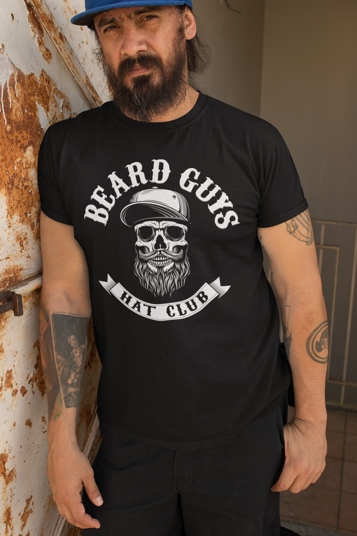 Express confidence, masculinity, and streetwise flair with the Beard Guys Hat Club graphic tee shirt. Explore more beard-themed apparel and bold designs by visiting our website: